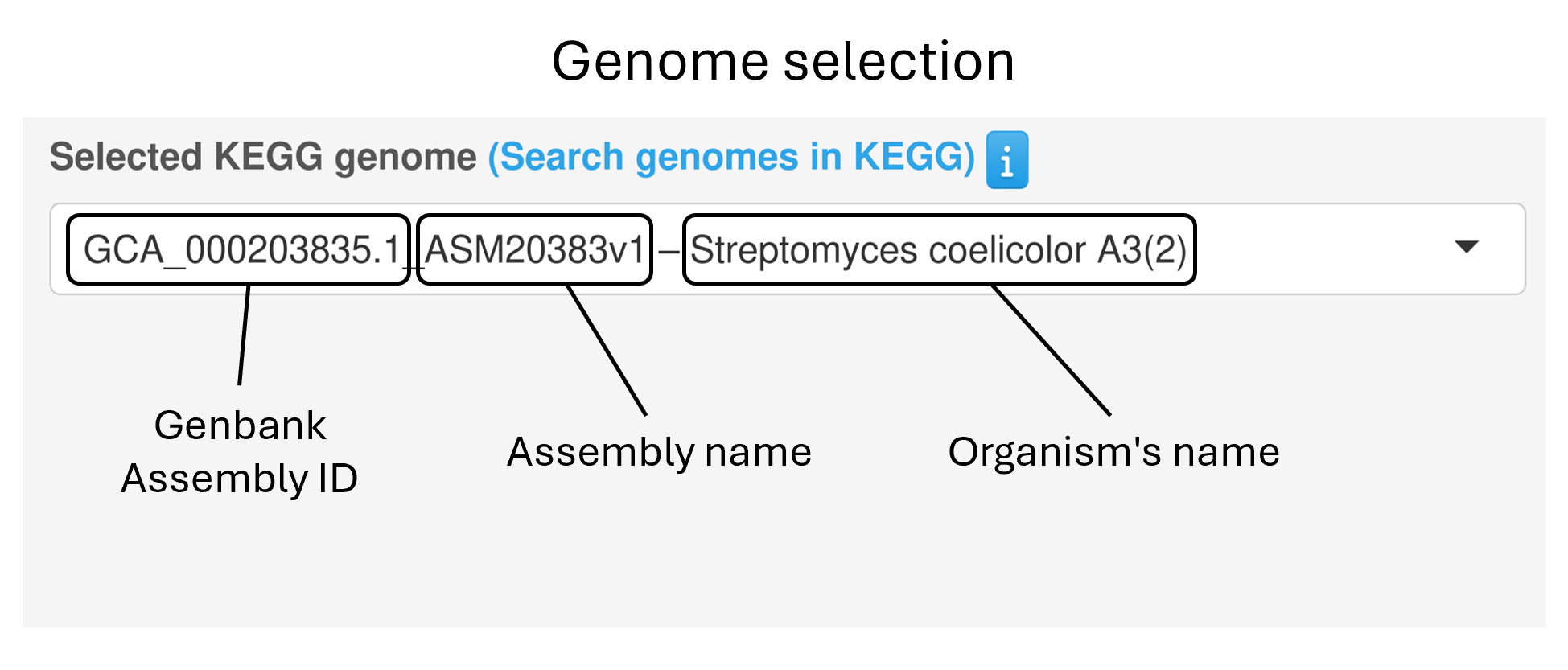 Users can choose a bacterial genome from the integrated KEGG collection, which can be queried by: