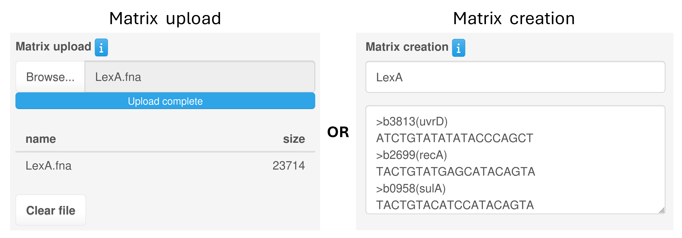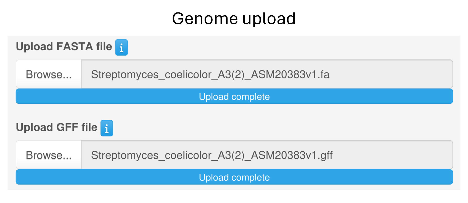 Alternatively, users can upload their genome of interest by providing the nucleotide sequence together with the corresponding annotation file (in FASTA and GFF3 format, respectively).